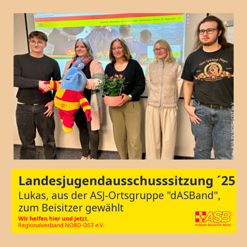 Auch Geschäftsführer Jens Brauer des ASB RV NORD-OST e.V. zeigt sich vom Engagement der Jugend beeindruckt: „Jugendarbeit, wie die der ASJ, ist eine Investition in die Zukunft. Hier lernen junge Menschen Verantwortung, Zusammenhalt und Mitgefühl. Der Wahlerfolg von Lukas spiegelt genau die Werte wider, die wir in unserer ASJ vermitteln möchten: Partizipation, Verantwortung und aktives Mitgestalten.“