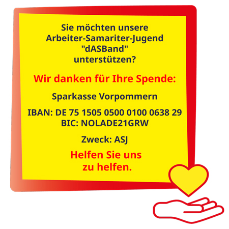 Der Fokus der ASJ-Ortsgruppe „dASBand“ liegt besonders auf der Kompetenzentwicklung von Jugendlichen für Erste Hilfe und sanitätsdienstliche Aufgaben. Dabei möchten sie für soziales Engagement begeistern und Werte wie Hilfsbereitschaft, Gerechtigkeit und Toleranz vermitteln. Mit Projekten, Aktionen und regelmäßigen Jugendtreffen bietet die ASJ Jugendlichen ab 14 Jahren einen Raum, um sich sozial zu engagieren, Verantwortung zu übernehmen und gemeinsam etwas zu bewegen.