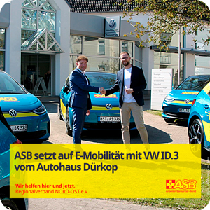 ASB setzt auf E-Mobilität mit VW ID.3 vom Autohaus Dürkop