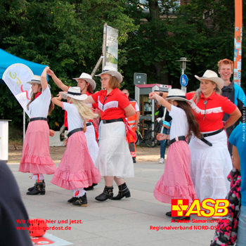 Für Groß und Klein gab es, neben den vielen Mitmachaktionen bei den Ausstellerinnen und Ausstellern, auch noch ein kleines Programm zu erleben. Die Trommelschule „Trommel mit“ aus Stralsund sorgte unter der Leitung von Jens Schnibben für eine rhythmische Mitmach-Action. Und wer sich beim Trommeln noch nicht vollkommen verausgabt hatte, ließ sich von einer Line-Dance-Gruppe aus Grimmen zu schwungvollen Schritten hinreißen.