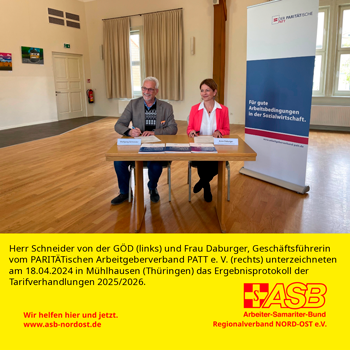 Vom 15. – 18.04.2024 trafen sich in Mühlhausen (Thüringen) Vertreterinnen und Vertreter des PARITÄTischen Arbeitgeberverbandes PATT, darunter auch unser Geschäftsführer Jens Brauer, welcher als Vertreter für MV in der Tarifkommission tätig ist, sowie der GÖD, zu den Tarifverhandlungen 2025/2026.