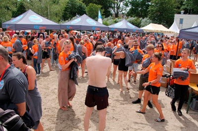 Nach einer knappen Stunde traf dann das große Mittelfeld ein und am Zieleinlauf wurde es voll. Die ältesten Teilnehmenden waren eine 77 jährige Schwimmerin und ein 84-jähriger Schwimmer.
