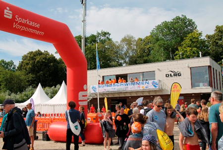 Bereits um 10 Uhr begann das Kinderschwimmen, bei dem der Sanitätsdienst, der Rettungsdienst, die Auszubildenden sowie die Jugendgruppe des ASB RV NORD-OST e.V. einige der jungen Teilnehmenden bei kleineren Verletzungen und leichten Unterkühlungen liebevoll versorgten.