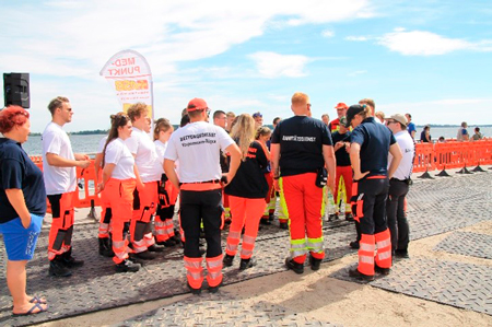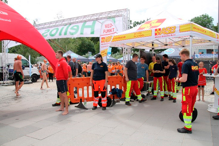 Beim 59. Sundschwimmen in Stralsund übernahmen wieder viele ehrenamtliche Helferinnen und Helfer des ASB RV NORD-OST e.V. in Zusammenarbeit mit der DLRG und anderen Organisationen die medizinische Absicherung dieses Events, sowohl an Land als auch auf dem Wasser.