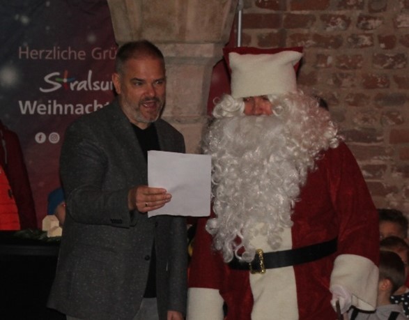Am 30.11.2023 wurden die Kinder erneut in den Rathauskeller eingeladen. Dort kürte Oberbürgermeister Dr. Alexander Badrow, zusammen mit dem Weihnachtsmann, den schönsten Weihnachtsbaum. Nach einer ersten Ansprache nahm er sich die Zeit, um jeden einzelnen Weihnachtsbaum anzuschauen. Danach stimmte Herr Badrow ein Weihnachtslied an, welches er mit den Kindern und dem Weihnachtsmann zusammen sang. Zum Schluss gab es noch für die Kinder, welche so fleißig gebastelt und geschmückt hatten, Gutscheine für die Fahrgeschäfte auf dem Weihnachtsmarkt. Diese wurden ebenfalls durch die SWS Stadtwerke Stralsund GmbH zur Verfügung gestellt
