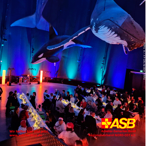 Die Erwartungen waren groß, als im Herbst die Einladungen zur diesjährigen Weihnachtsfeier in den verschiedenen Bereichen des ASB RV NORD-OST e.V. eintrafen und das Ozeaneum als Veranstaltungsort verkündet wurde. Und die Kolleginnen und Kollegen wurden nicht enttäuscht. Der Bereich Rettungsdienst, der in diesem Jahr für die Organisation zuständig war, setzte mit der Wahl der Location neue Maßstäbe.