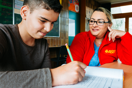Unsere Integrationshelfer:innen erleichtern jungen Menschen mit Beeinträchtigung die Teilhabe am Klassen- und Schulgeschehen, um eine größtmögliche Selbstständigkeit und soziale Integration zu realisieren.